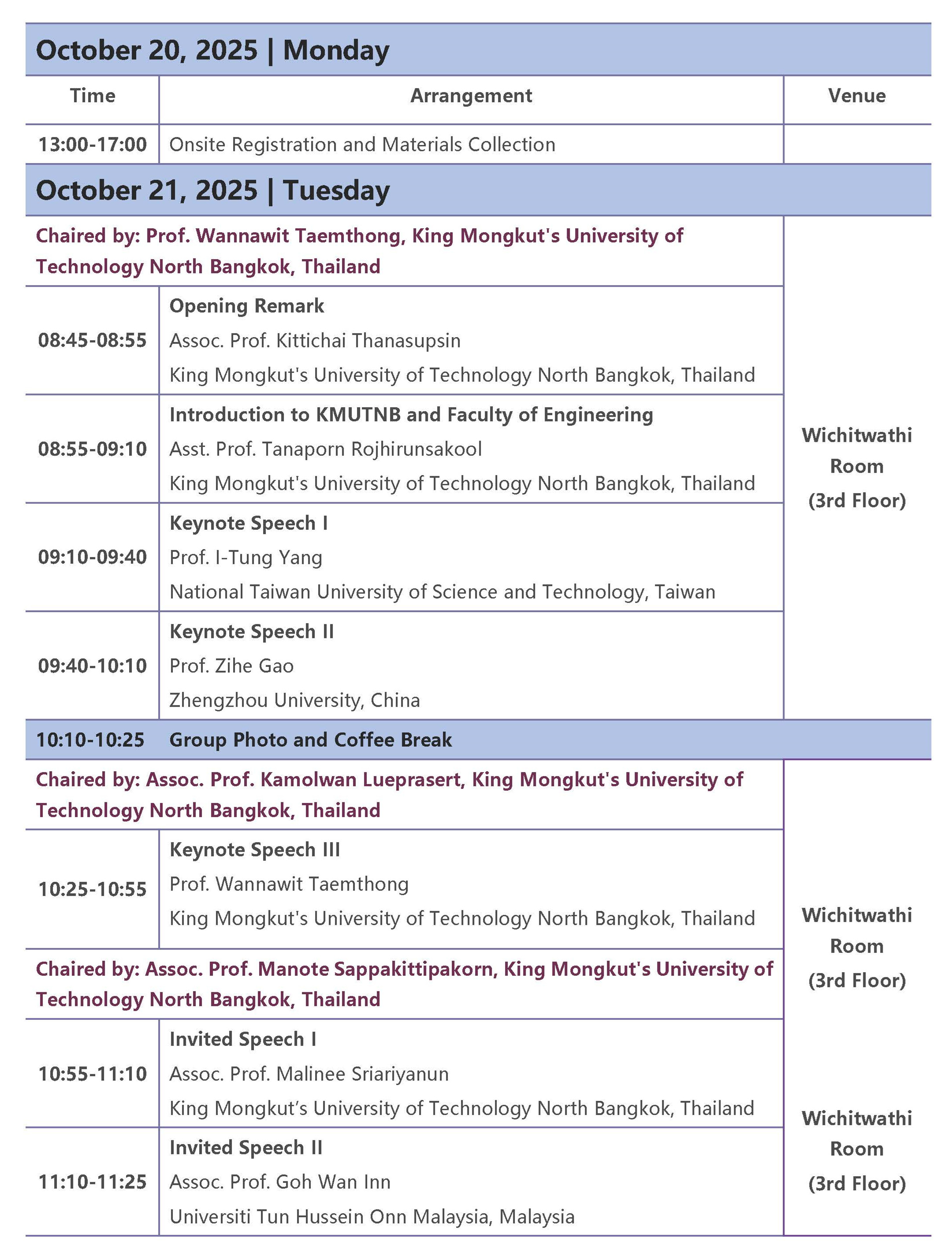 The schedule above is simplely for reference and subject to change. Author should refer to the final version for details which will be available about two weeks before the conference.